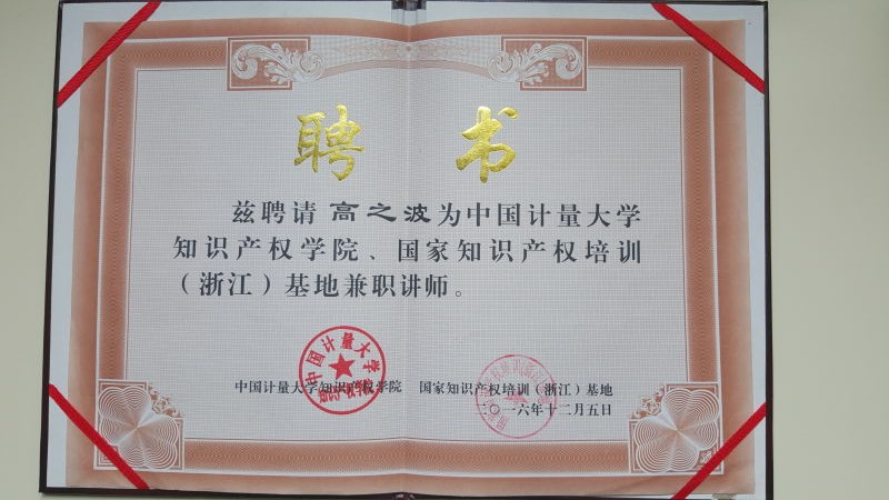 On December 5th of 2016, Mr. Zhibo GAO, the founder and partner of Intelightip IP Law Firm, was invited as a guest teacher of Intellectual Property College of China Jiliang University and China Intellectual Property Training (Zhejiang Province) Base.